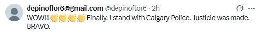 “哇!终于!这次我挺卡尔加里警方。正义得到了伸张。好样的!”