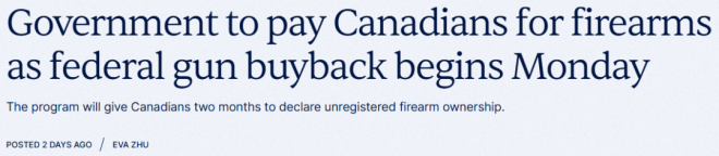 从本周一(1月19日)起,该清单中受管制或违禁枪支的持有者可以提交申报文件,选择在回购期开始后上交枪支以换取补偿,或永久性停用(销毁)枪支以获得400至700加元的一次性补偿。
