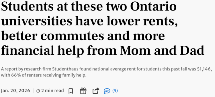 在多伦多大学和多伦多都市大学的受访学生中,分别有61%和73%的学生表示他们认为房租可以负担得起。然而,数据显示,这些学生中的大多数都得到了家人的部分或全部经济支持。