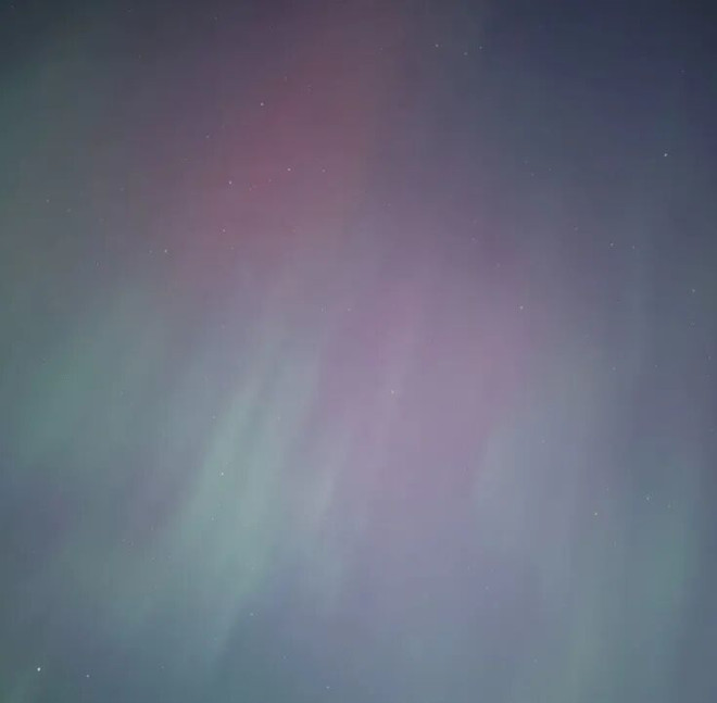 Jon Yyl也在同一时间于本拿比山拍摄了多张照片,并在后期处理中呈现出浅绿、紫色与深蓝色交织的华丽色调。Ajay Kh则在凌晨3点前用iPhone记录下极光的变化,他表示,即使肉眼也能清楚看到极光形态不断变幻,“非常震撼”。