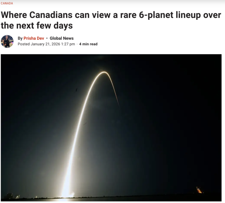 其他地区,如草原省份和大西洋加拿大部分地区,也有机会看到部分行星排列,具体取决于云量和当地天气条件。