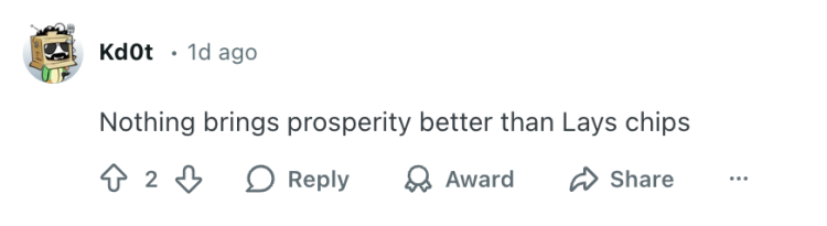 也有网友调侃:“没有什么比一盒乐事薯片更能带来‘新年兴旺’了。”