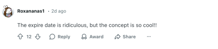 或许正如一位网友所说:“概念是挺酷的,但过期时间真的太离谱了。”