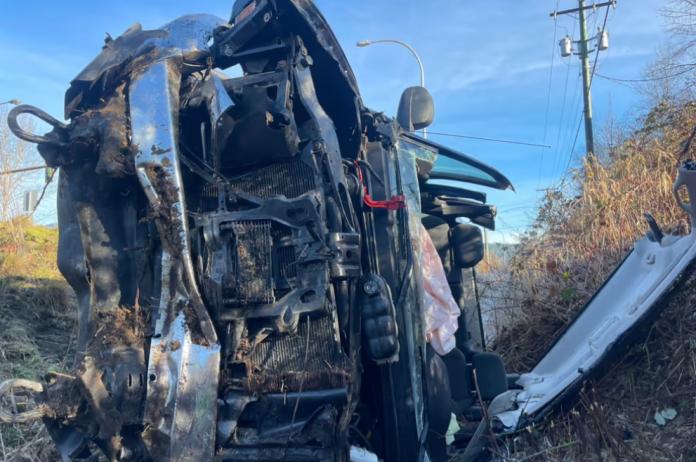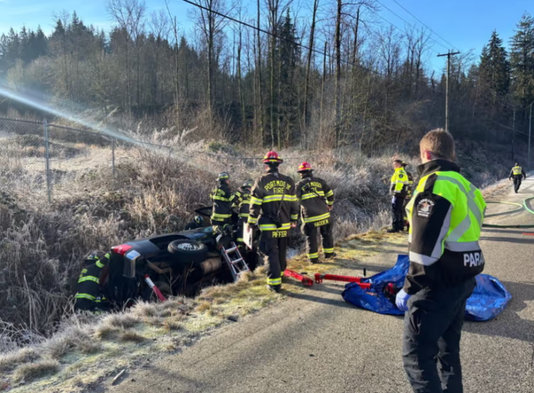 满地宝警方(Port Moody Police)在一份声明中表示:“经查明,一辆深色雪佛兰皮卡车的司机失去控制,翻入路边沟渠,司机(车内唯一乘客)被困其中。”