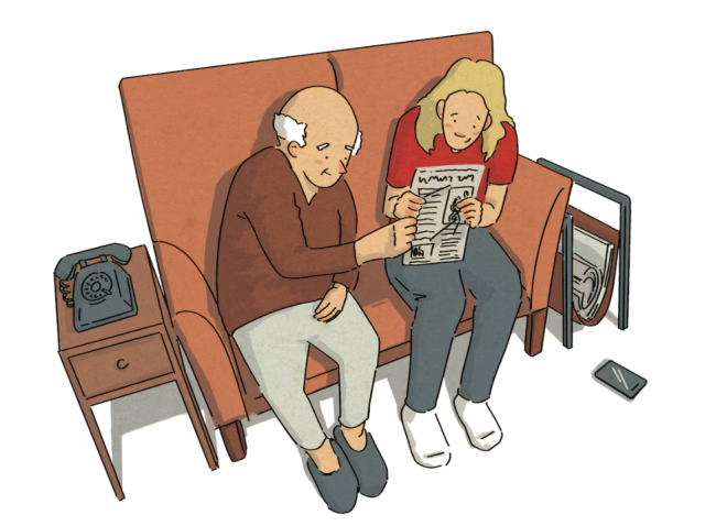 规则很简单:我不能整理他的文件和杂物(他说那都是“完美摆放”),而且每天早上要陪他喝咖啡、读报纸。我们决定先试试。