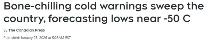 -50℃极寒, 35厘米暴雪袭加拿大!全国进危险极寒