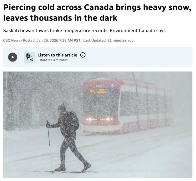 在部分城市,严寒也真实影响着人们的日常生活。有安省居民形容天气“冻得发疼、走路都站不稳”,但也有人表示降雪并未像预期那样严重,生活基本未受影响。