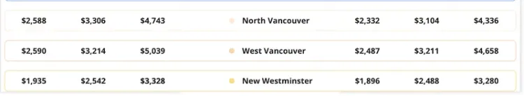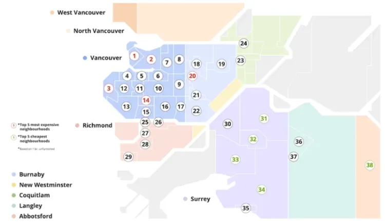 如果你必须留在本拿比,South Slope是目前最便宜的选择,平均1976加元。列治文这边,斯蒂夫斯顿成了价格最低的区域,约1741加元。
