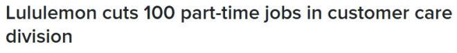 加拿大运动服饰品牌Lululemon Athletica Inc.宣布裁减 100个职位,作为其客户服务部门调整的一部分。