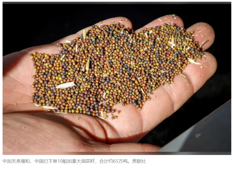 中加关系缓和…中已下单10船加拿大油菜籽