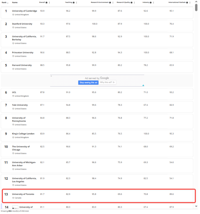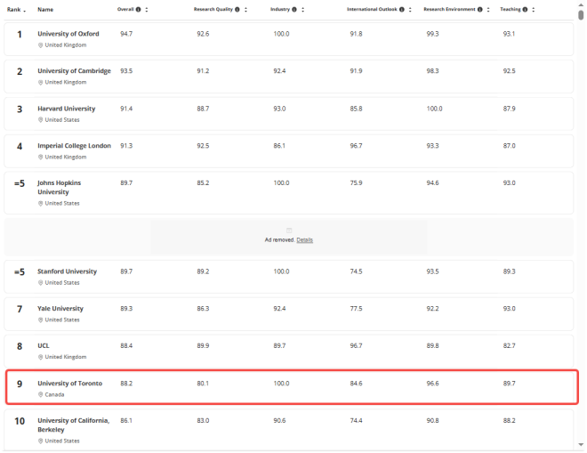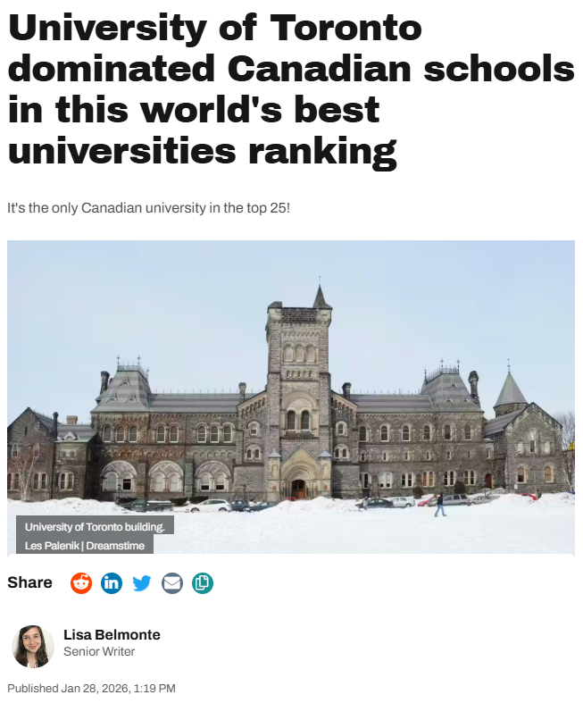 这意味着,多伦多大学早已不只是“加拿大第一”,而是真正迈入了全球学术第一梯队。