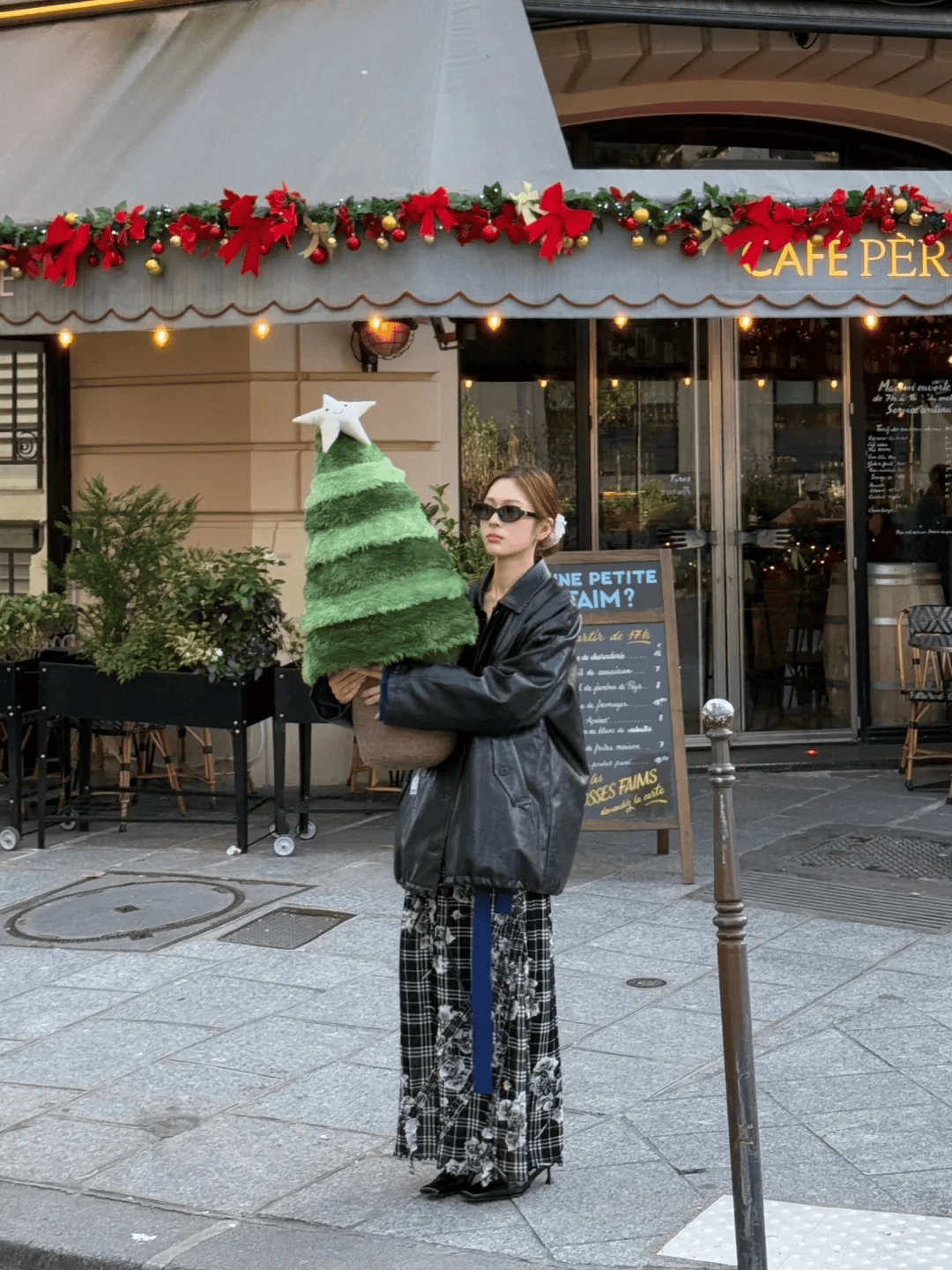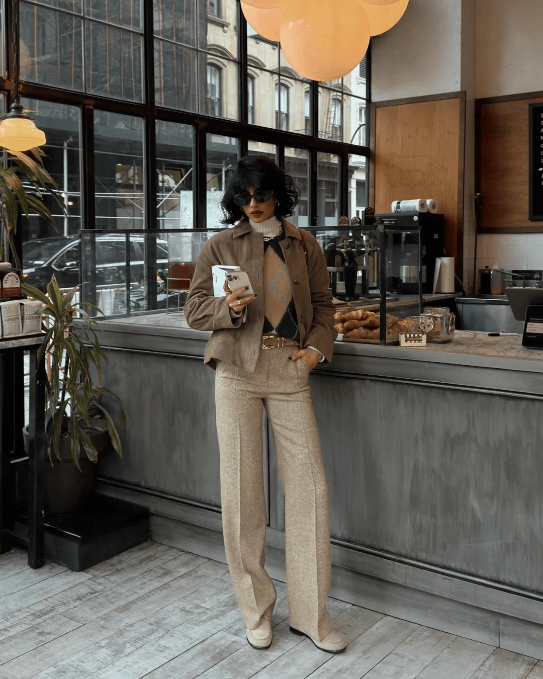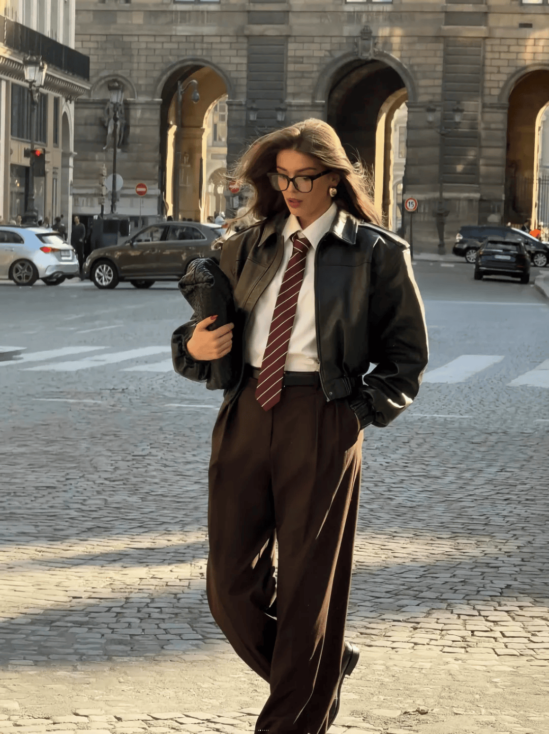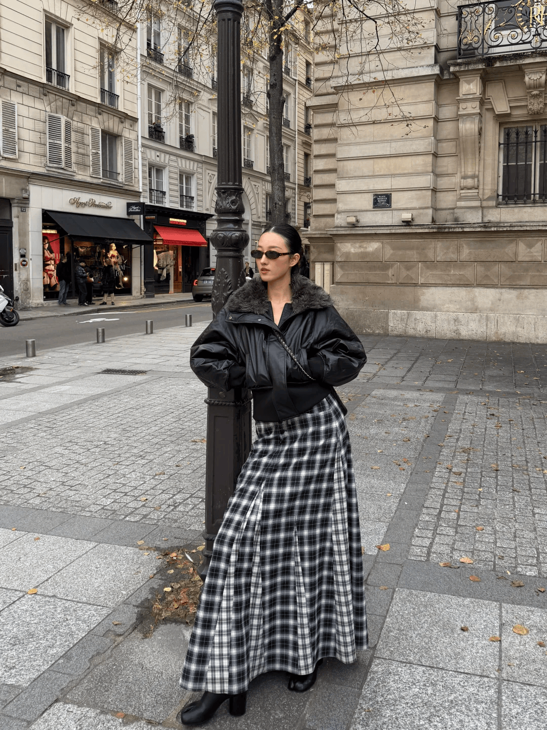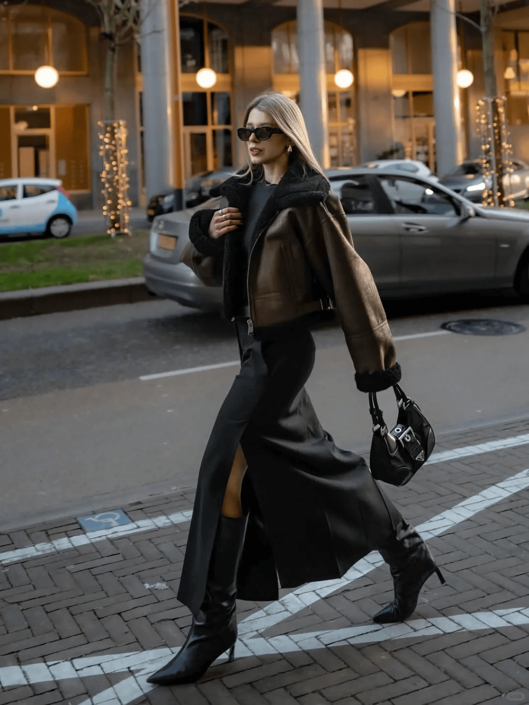 或是咖色皮衣拥抱着米色针织长裙的暖意,