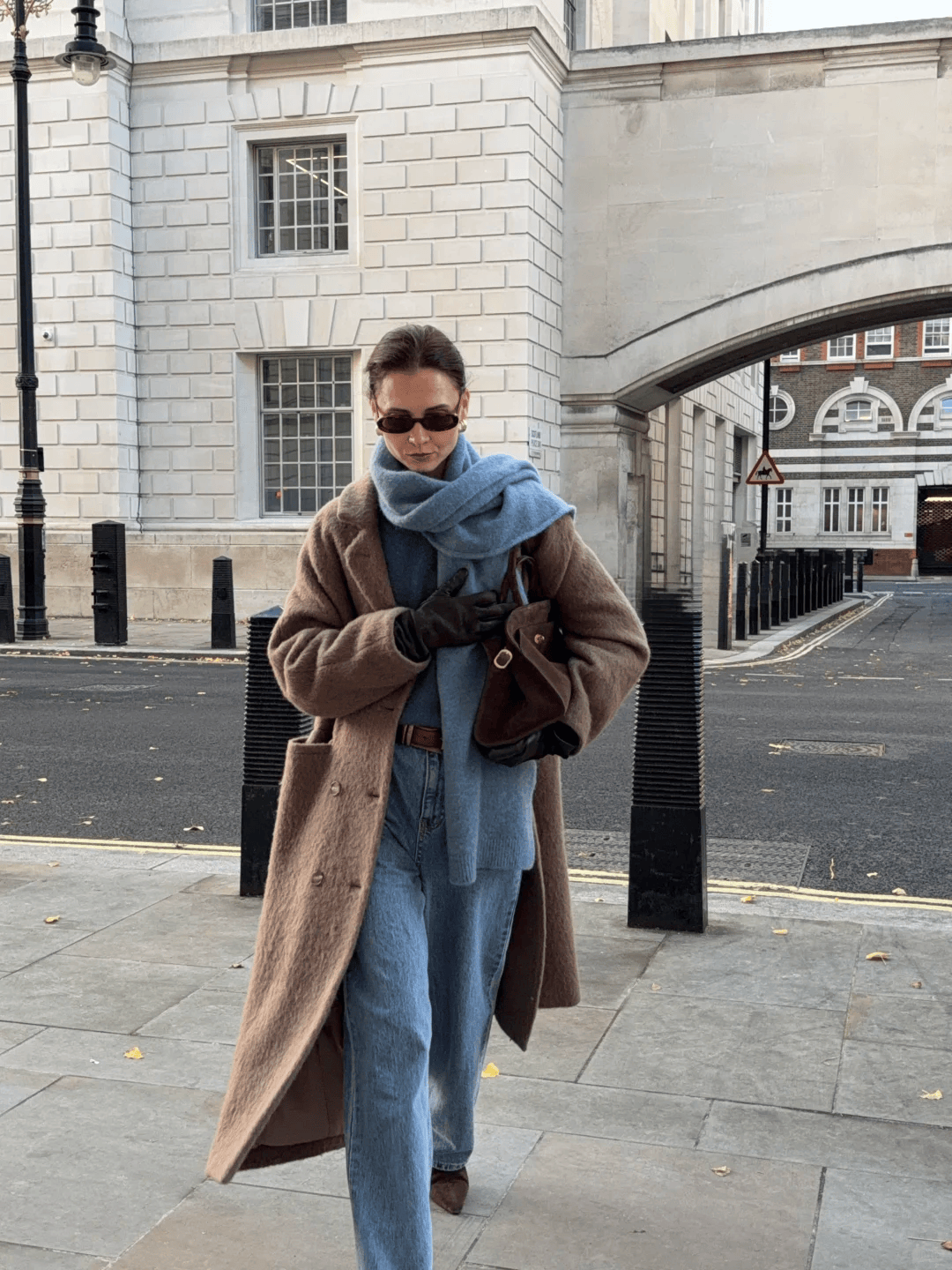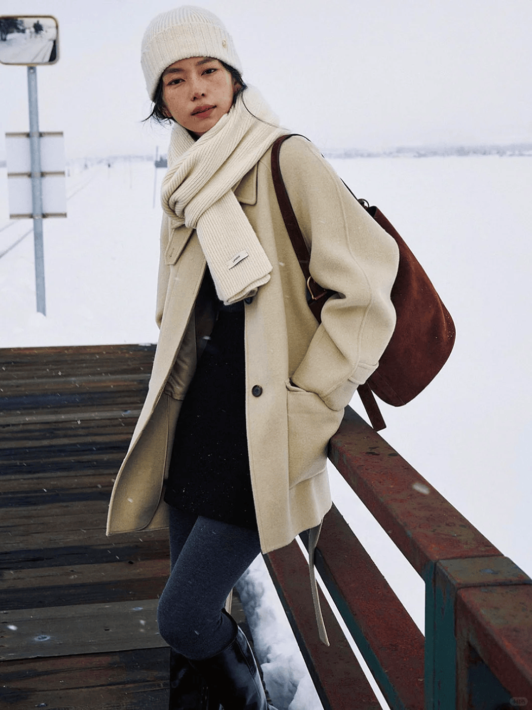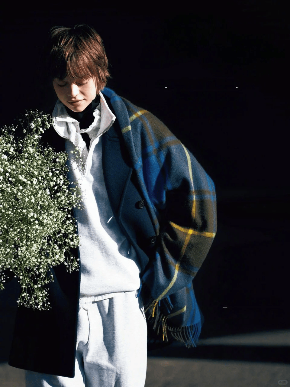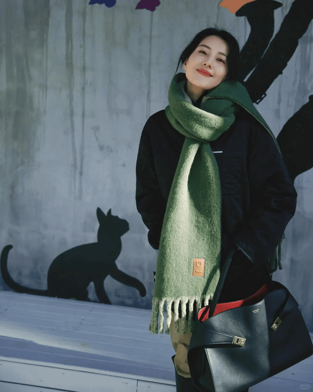 羊绒围巾的细腻柔和能为硬朗的外套注入暖意,