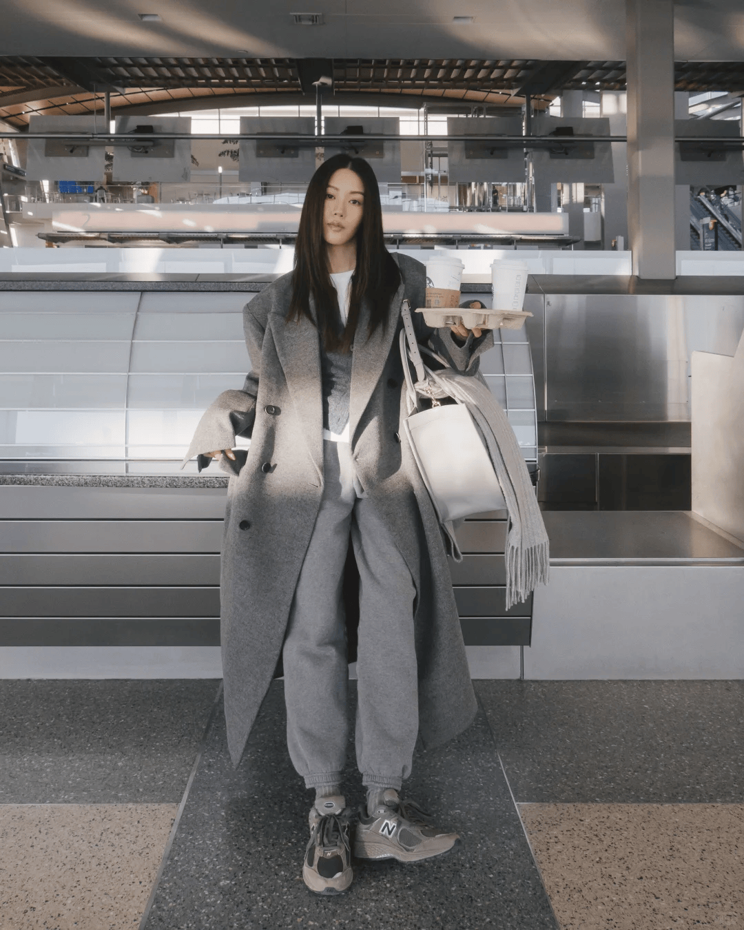 而羊毛格纹围巾的文艺感则可中和大衣的正式。