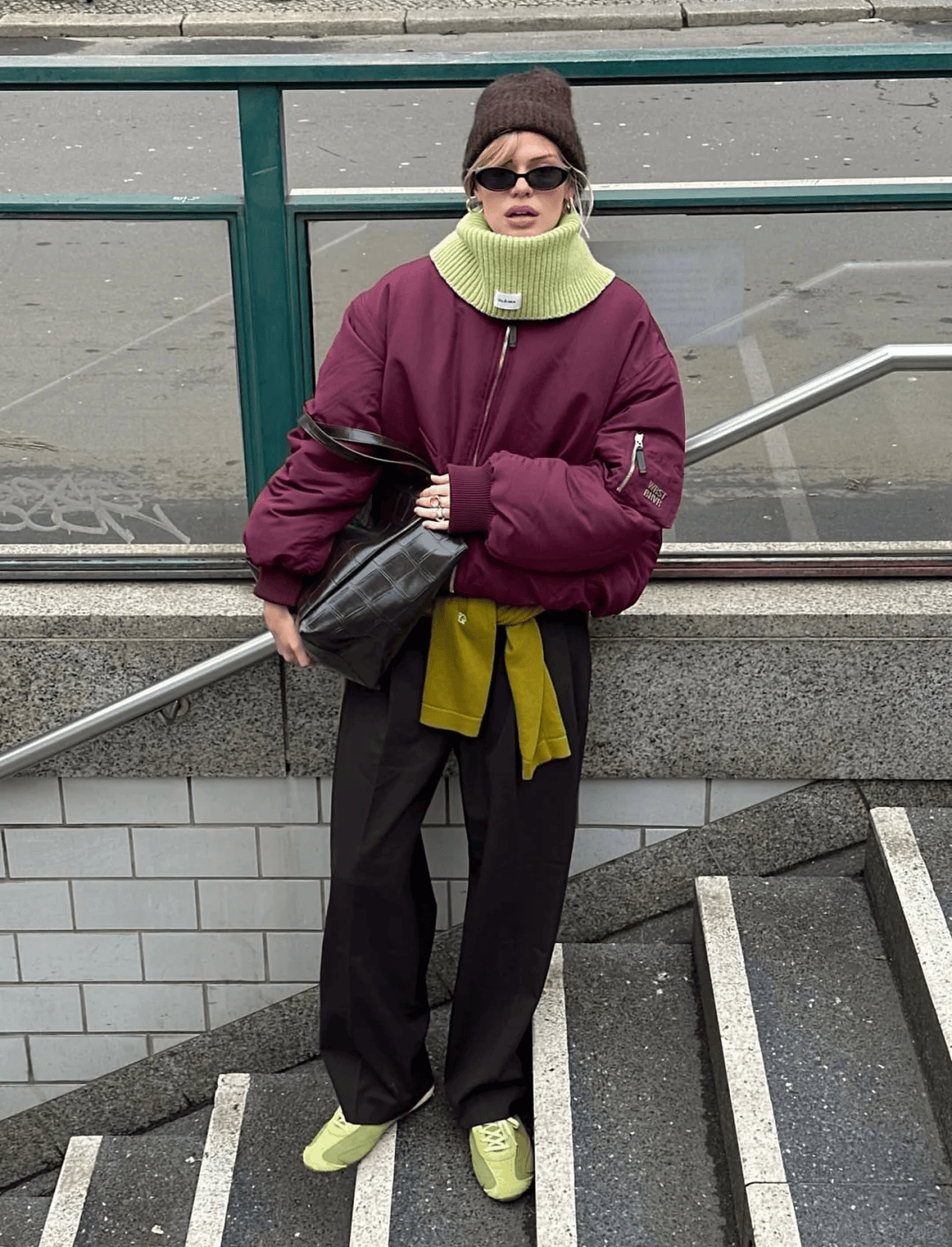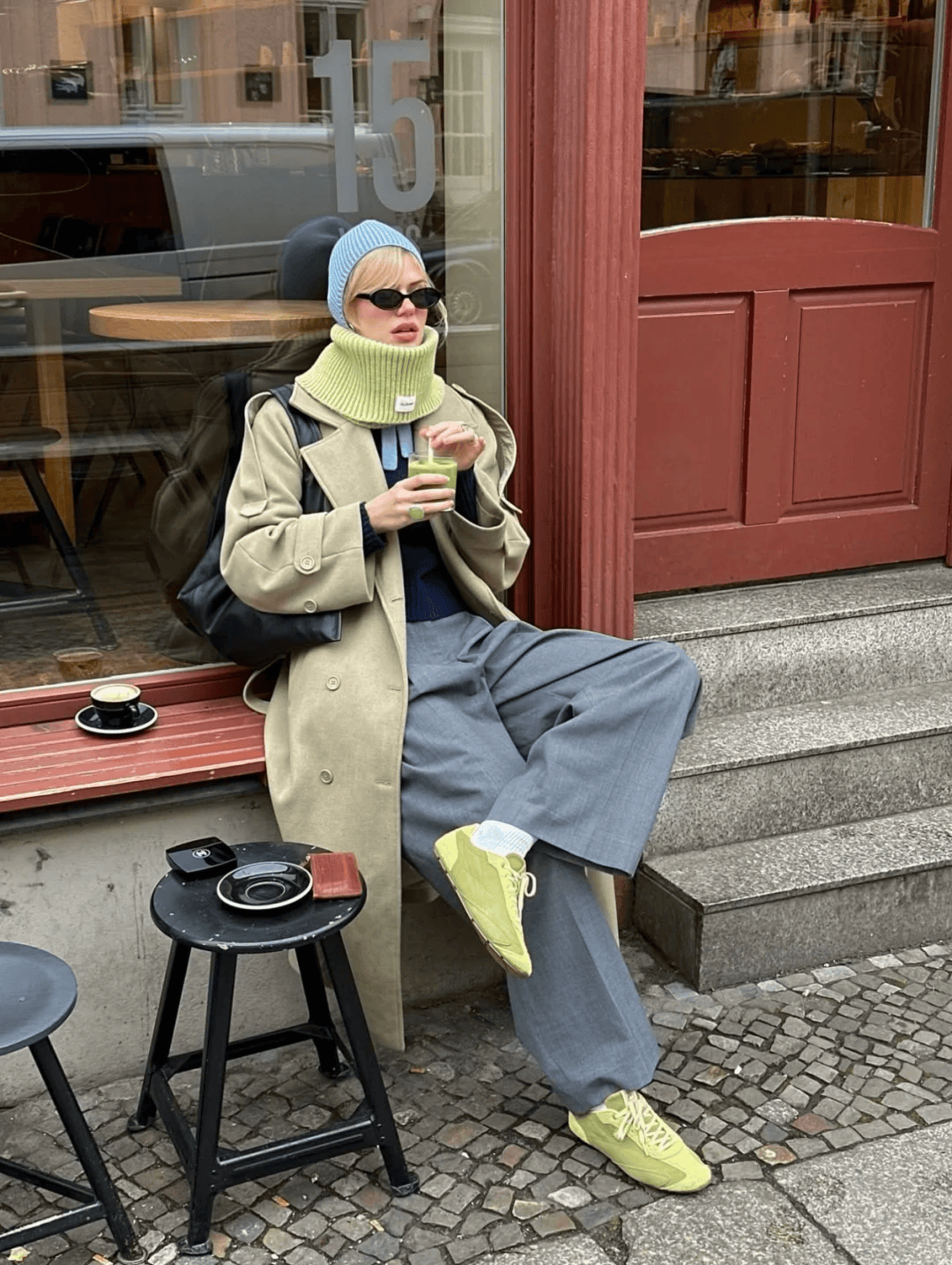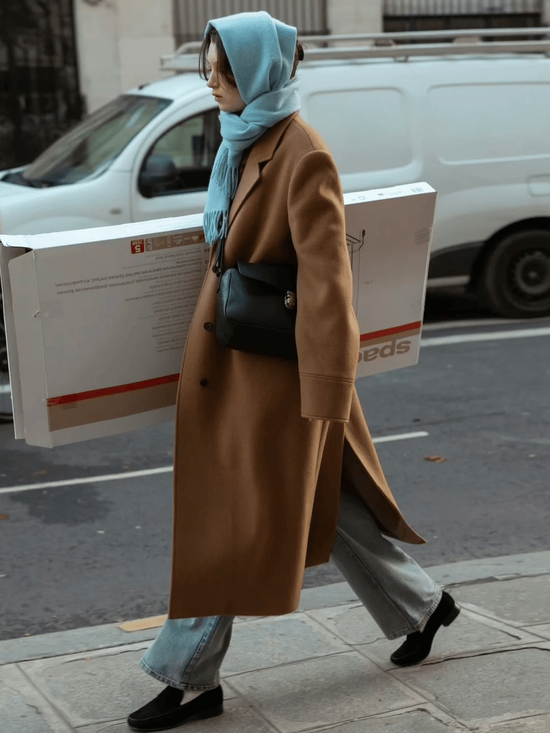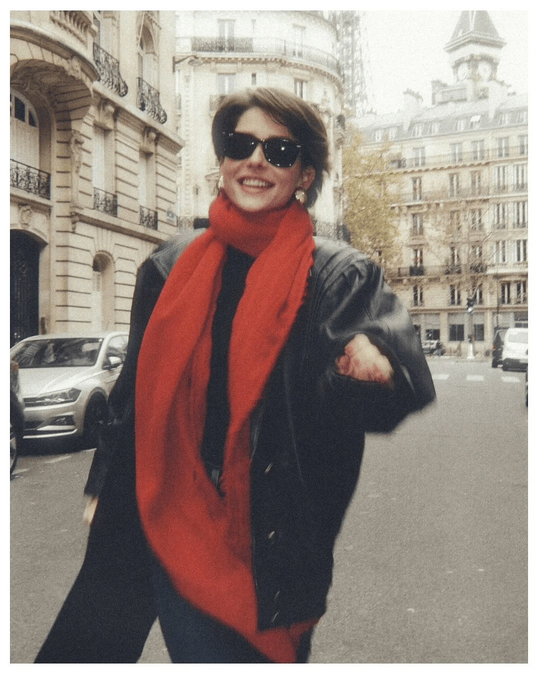一抹与口红呼应的亮色围巾便是面向世界的微笑。