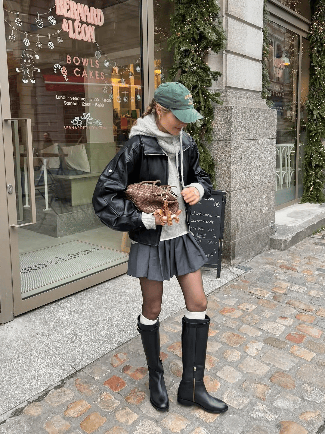 皮衣+裙子、大衣+运动鞋 这4组搭配照着穿