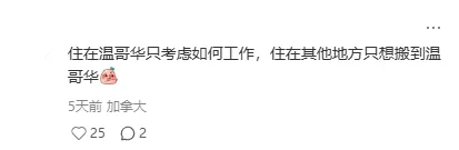 有网友直接给温村封神:“住在温哥华只考虑如何工作,住在其他地方只想搬到温哥华。”