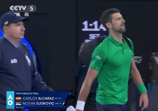 第一盘比赛,双方上来全部保发。德约第二个发球局保发后,破掉阿尔卡拉斯发球局,局分3-1领先。第5局德约继续保发,比分4-1领先。