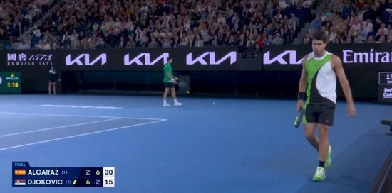 第5、第6局两人相继保发,局分阿尔卡拉斯4-2德约科维奇。