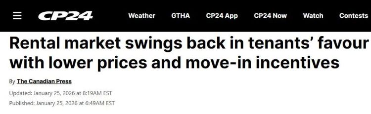 这一趋势预计在2026年还会持续。尤其2025年已是加拿大租赁住房开工量连续第二年创纪录,随着项目陆续完工,今年将有更多公寓入市,租客的选择会更多。