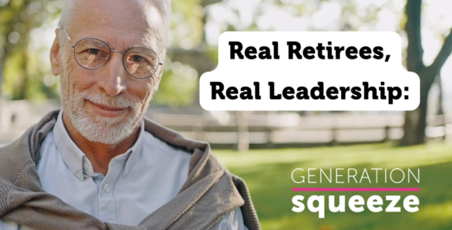 这段视频是为了宣传Generation Squeeze的提案:对退休收入超过10万加元的家庭减少OAS支付。该组织表示,这项改革每年可释放70亿加元的联邦支出。