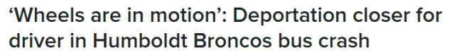 2018年造成青年冰球队Humboldt Broncos巴士惨剧的卡车司机,接近被遣返印度。