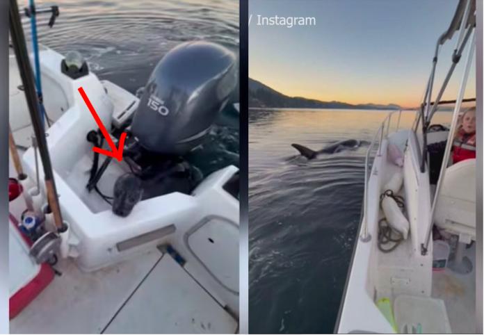 随后水面平静下来,他们以为这次遭遇就此结束,但事实并非如此。“一头虎鲸突然游到船底,那只海豹也游了过来,几乎是撞到了船舷,”她说。