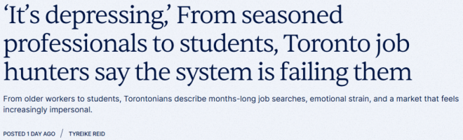 在多伦多,各个年龄层的人都发现,求职时间远远超过了他们最初的预期。