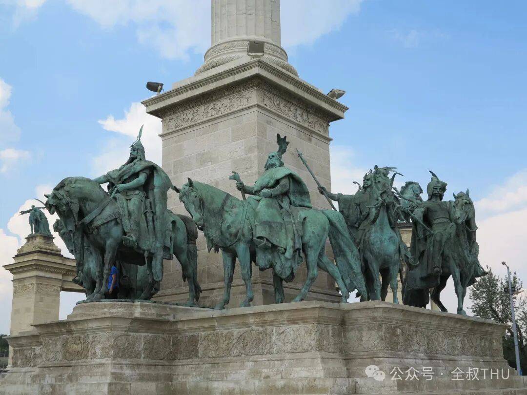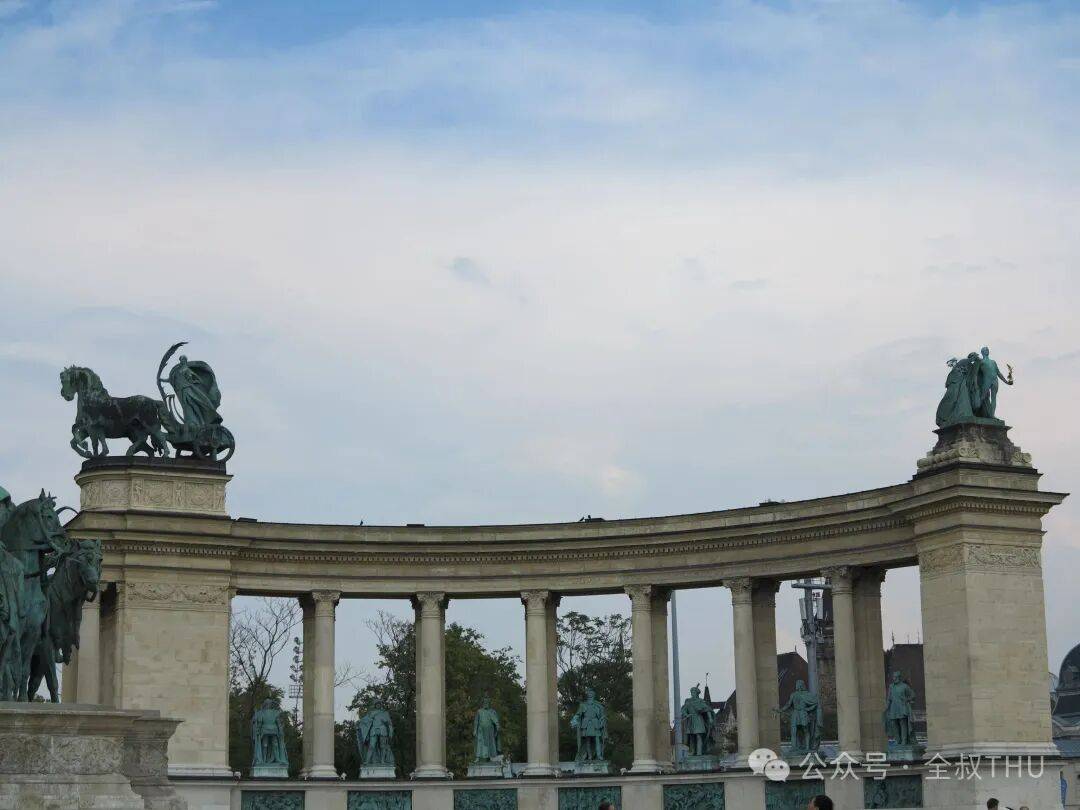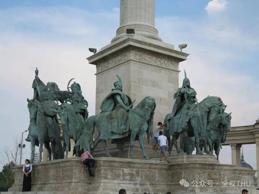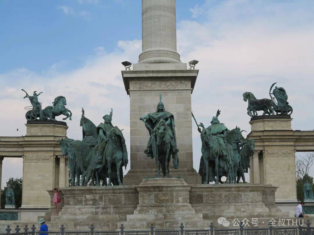 行走在宽阔的安德拉什大街(Andrassy Avenue),沿途有不少历史建筑,尽头是著名的英雄广场,形成匈牙利民族的马扎尔人的七个部落首领,勒马前行,四组雕刻分别是死亡、战争、凯旋、和平。此处千禧广场,纪念1000年前的先祖,开疆拓土,形成了匈牙利这个亚欧大陆上的重要国家,1997年,此处被列为联合国世界文化遗产。