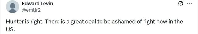 “亨特说得对。当下的美国确实有太多令人羞愧的事情。”↓