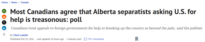 “我的感觉是,总体而言,加拿大人认为向外国政府求助、以分裂国家为目的的行为是不可接受的。这实际上是一条红线,大多数人都准备把它称为叛国,”Canada Pulse Insights首席执行官约翰·赖特(John Wright)在近日的采访中表示。
