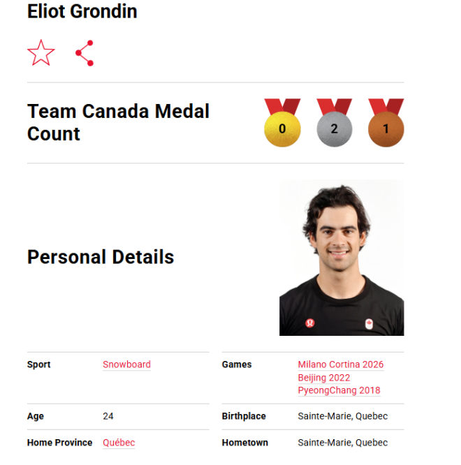 24岁的Grondin如今已拥有三枚奥运奖牌。他曾在2022年与 Meryeta O'Dine 搭档,在团体项目中夺得铜牌。