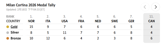 周三(2月18日)在2026年冬奥会进入第12个比赛日之际,加拿大队迎来收获颇丰的一天。