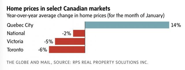 加拿大最大城市多伦多1月也录得较大跌幅。