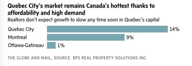今年1月,魁北克城的房价同比跳涨了14%,稳坐加拿大最火市场的头把交椅。