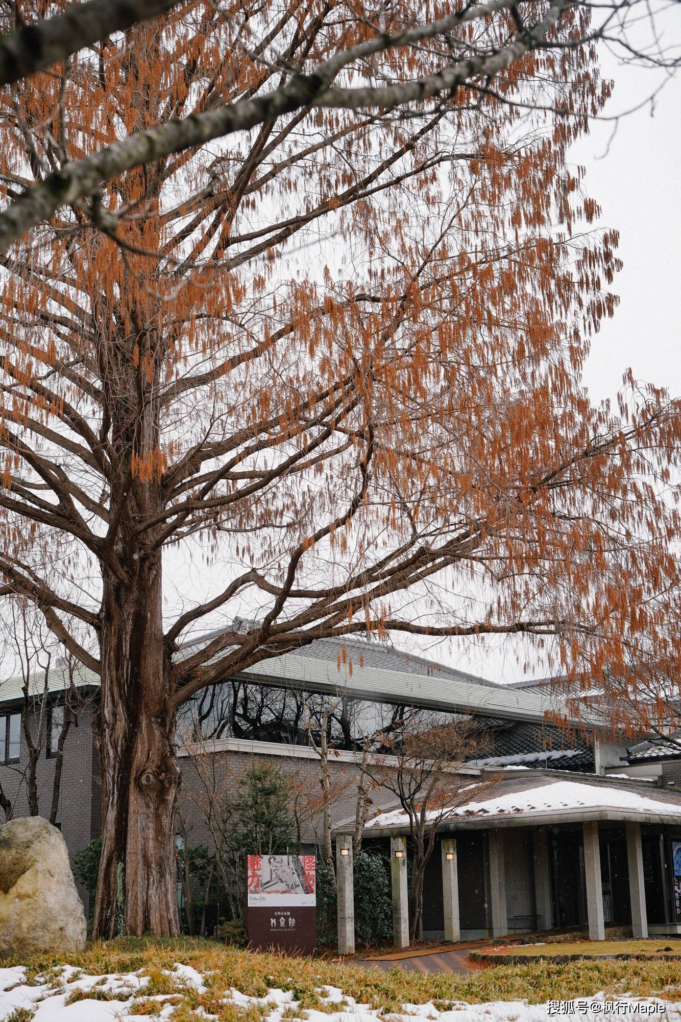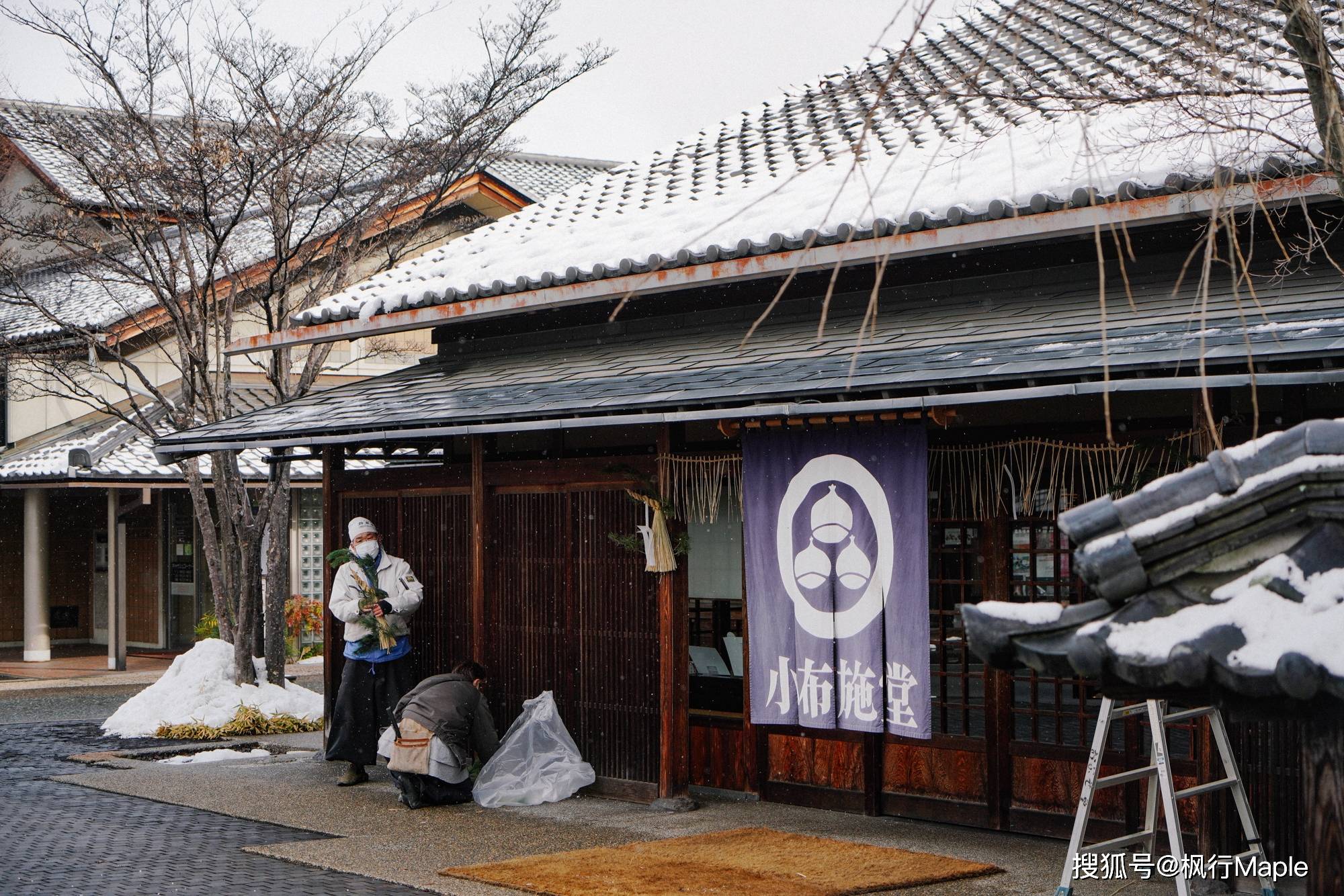 走出北斋馆,小布施下起了雪。