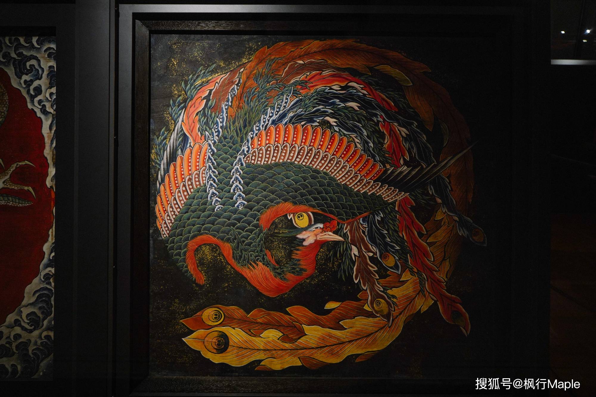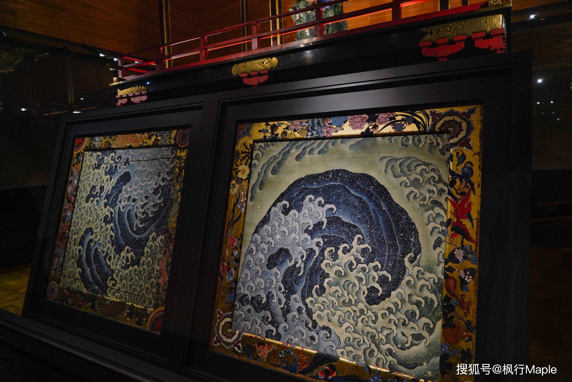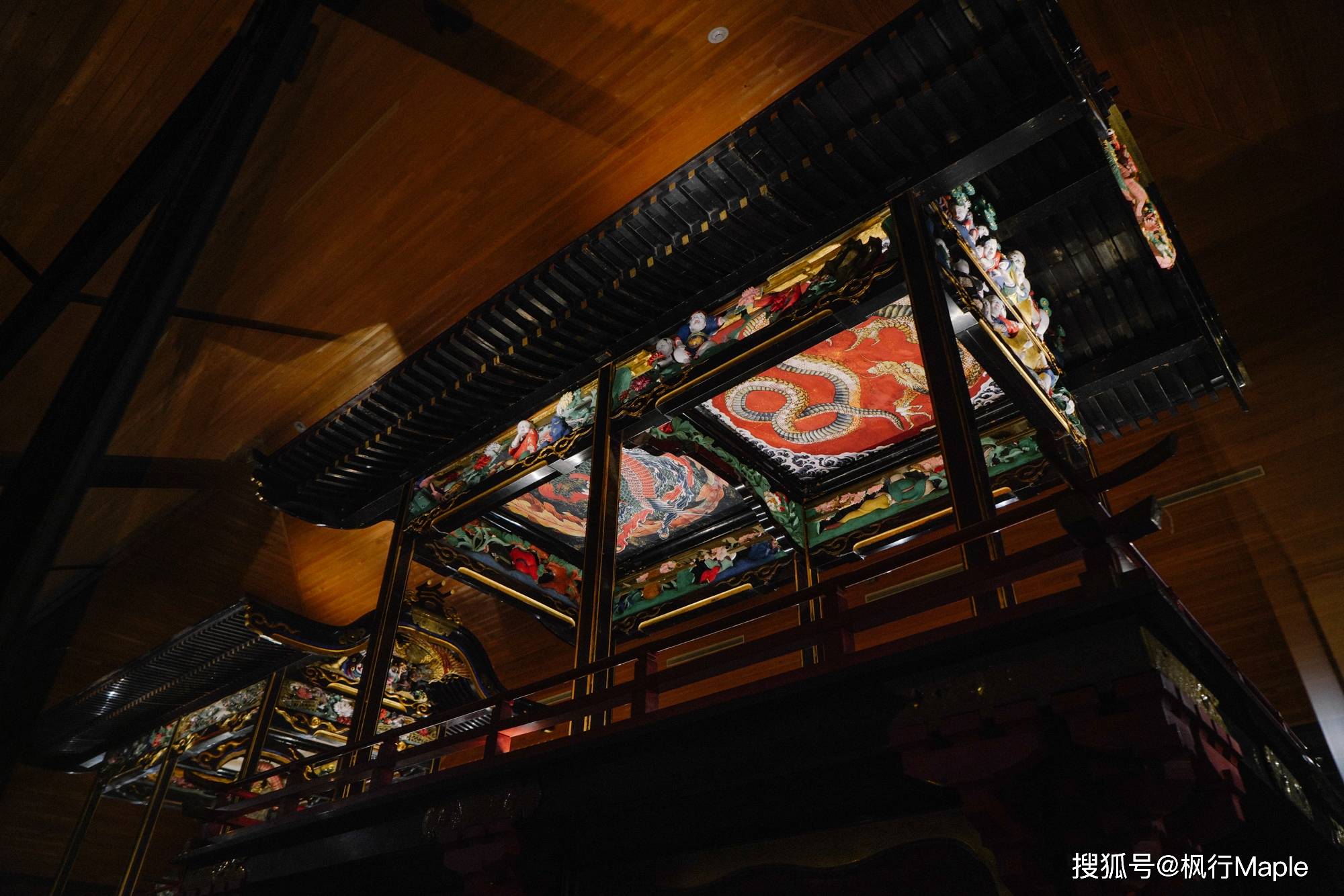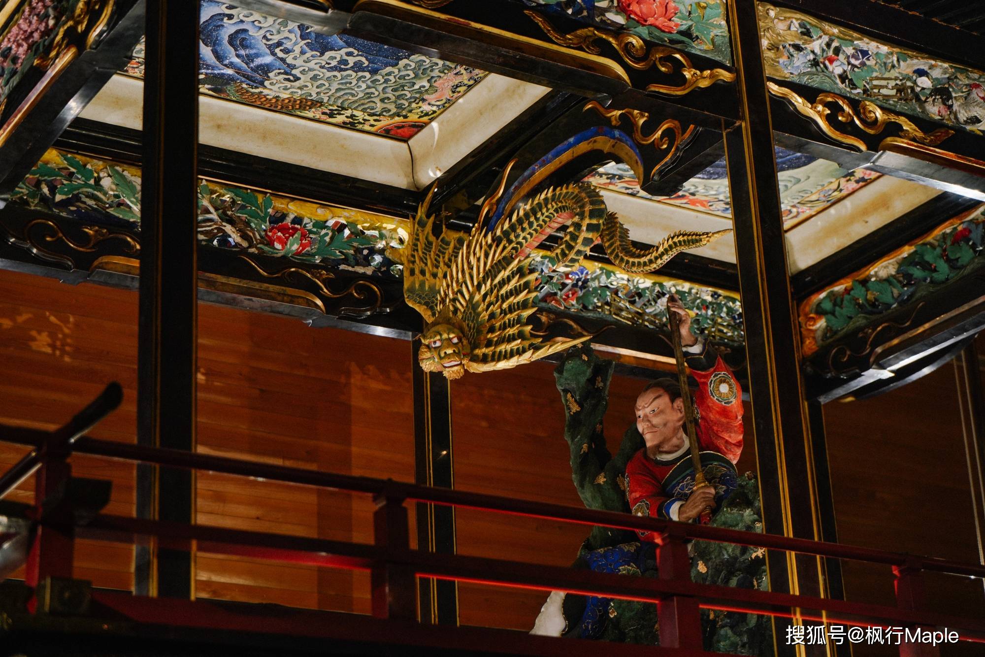 北斋在小布施逗留期间画的两幅关于庙会摊位的天花壁画,是他85、86岁时的亲笔画,能够让人感受到一种跃动感,这不同于浮世绘和北斋漫画。