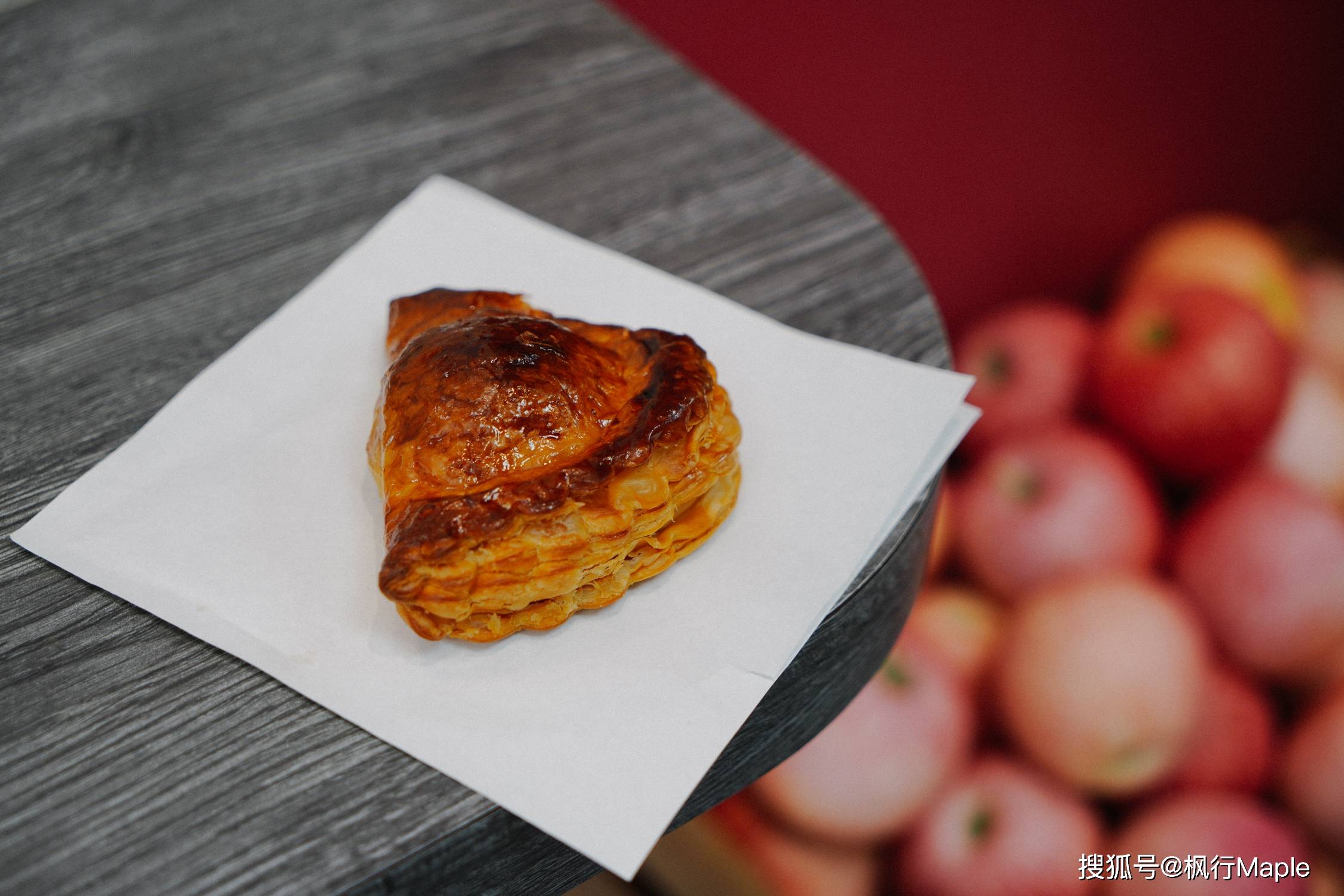 买了一块趁热吃,酥皮咬下去 “咔嚓” 响,层次细得像雪花,内里的苹果块带着微微的酸,