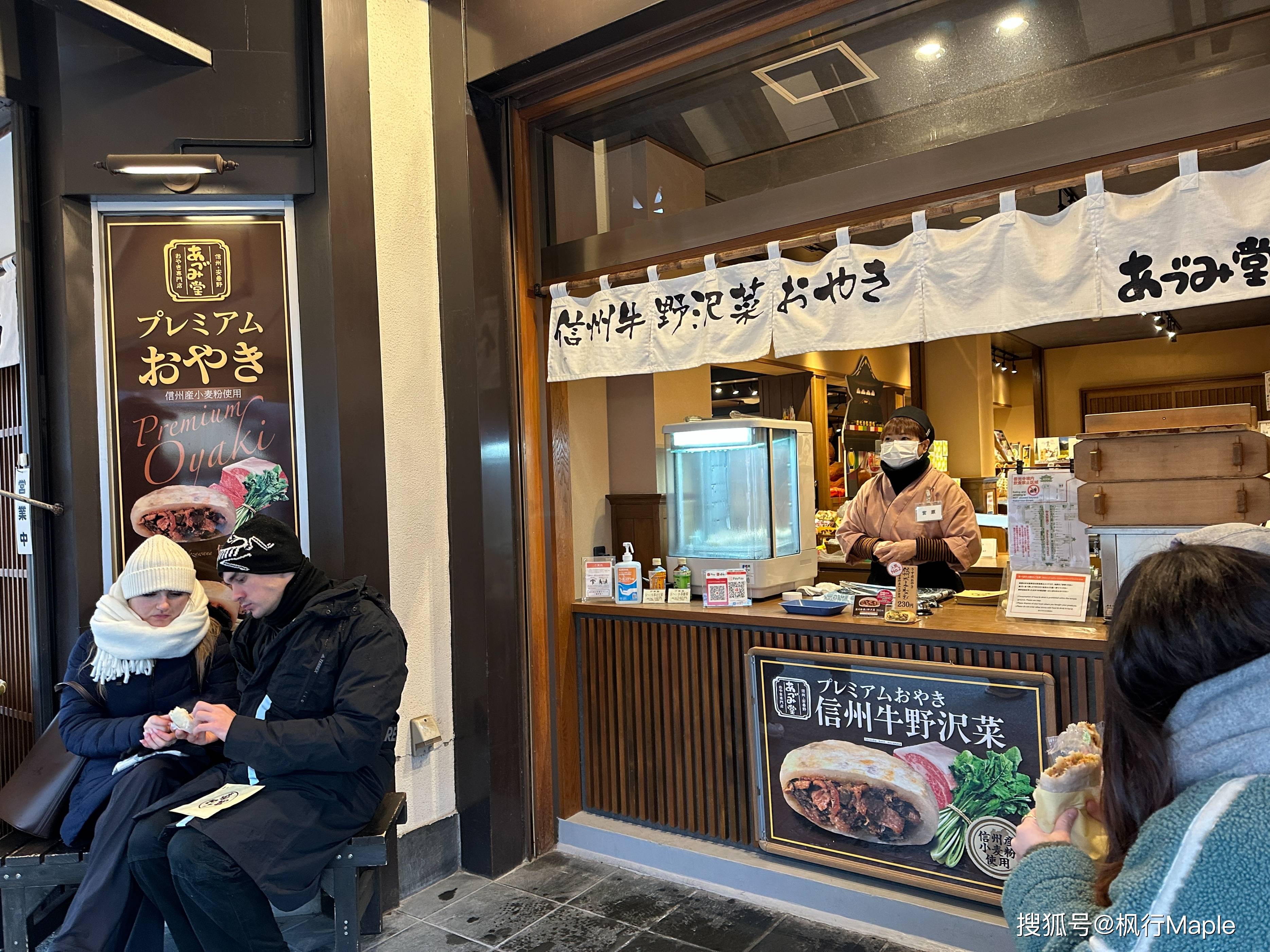 御烧(包子):蔬菜馅的小包子,煎包或蒸包。在善光寺表参道很多家在卖。热腾腾的吃一个,抹抹嘴,没有国内小笼包香。