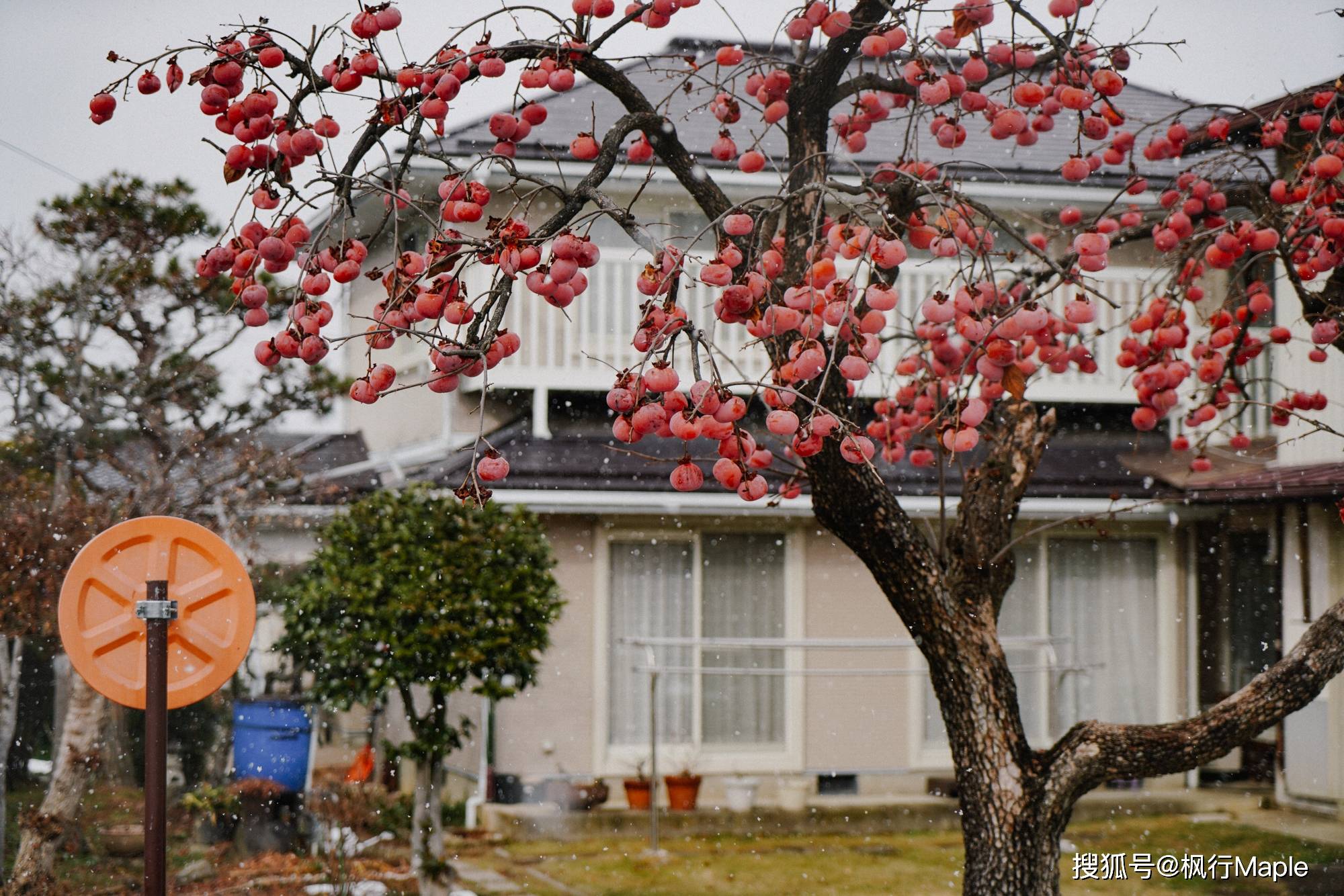 路边人家的柿子树长满了果实。在这个小小城市,冬天竟然如此具象。