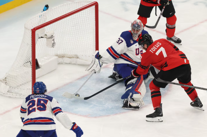 最终Jack Hughes 在延时赛中进球,帮助美国队击败加拿大,赢得冰球男子奥运金牌。