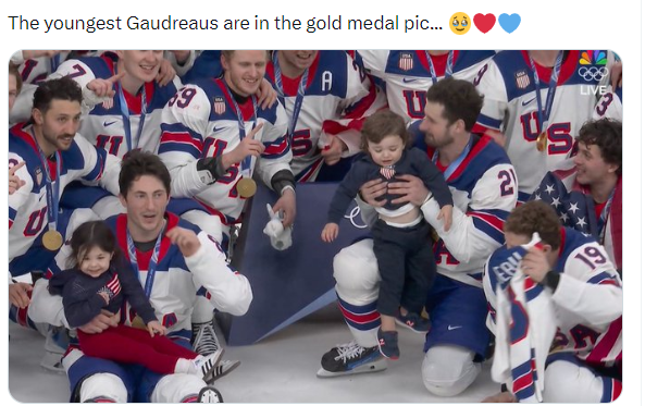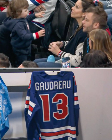 因车祸去世的已故球员 Johnny Gaudreau 的家人来到现场为美国队助威,他年幼的两个孩子也被带到决赛现场,在比赛后与球队成员合影留念。