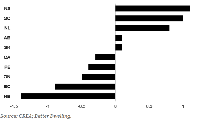 加拿大房价:按省划分的月度变化