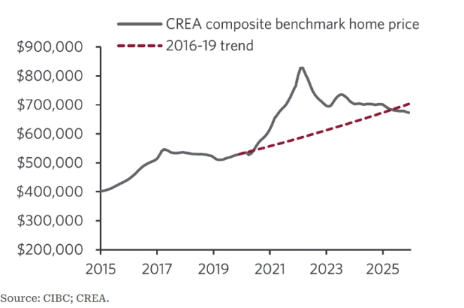 CIBC警告说:“描述当前房地产市场状况的最佳方式是:房价仍然太高,买不起,但又不够高,不值得建造。住房建设的经济模式,特别是高层公寓领域,已经崩溃。”