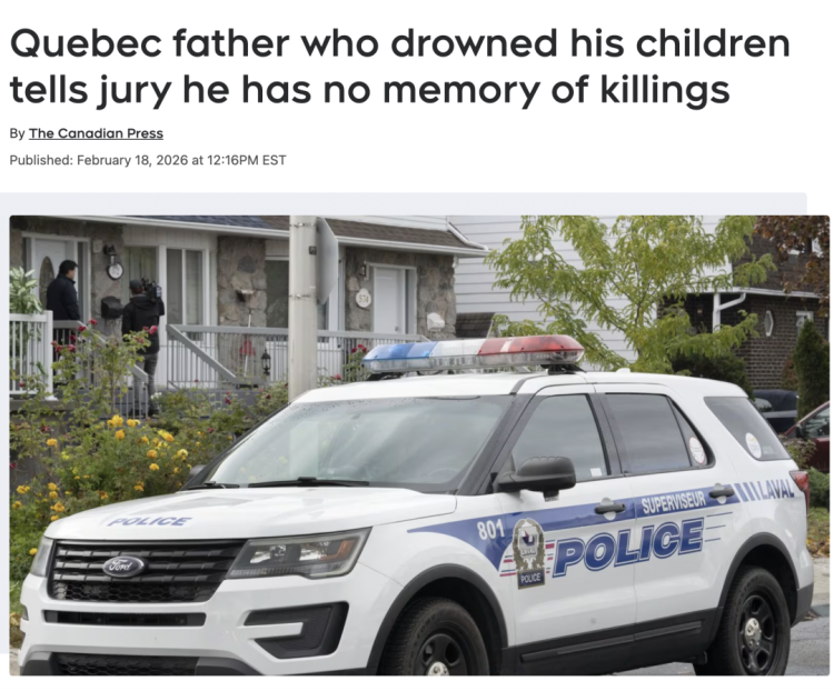 他表示,在案发当天自己曾服用芬太尼,因此完全不记得在Laval住所内溺死13岁的女儿和11岁的儿子。