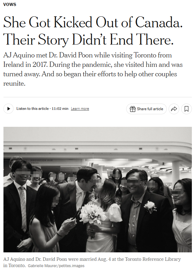在2025年底被捕前,Poon的公众身份不仅限于医生,他在疫情期间倡导家庭团聚也使其知名。2020年4月,他当时的女友(现妻子)从爱尔兰飞抵多伦多团聚,却立即被遣返。两人创立了Faces of Advocacy组织,曾向议会委员会作证,推动政策调整,让更多非公民入境加拿大。