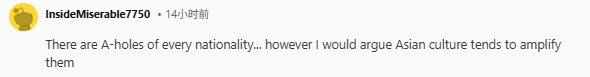 “每个国家、每个民族都有不好的人……不过我个人觉得,亚洲文化可能更容易放大这种行为。”