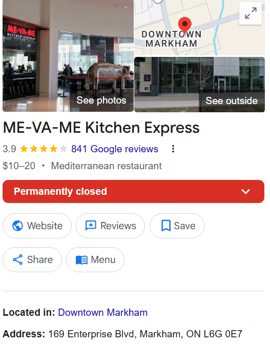 该网友表示,自己原本准备把餐厅地址发给朋友,结果一搜Google,页面上赫然写着永久关闭(Permanently closed)。