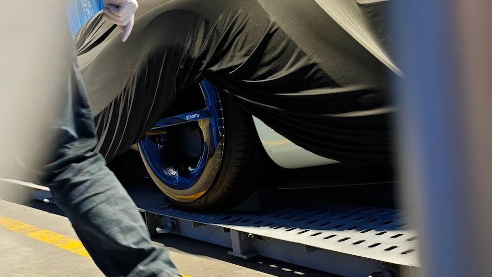从网络上流传的照片上看,图中车辆整体轮廓呈现低趴宽体的超跑姿态,线条流畅且充满肌肉感,轮毂尺寸可观,并且印有“xiaomi”字样。