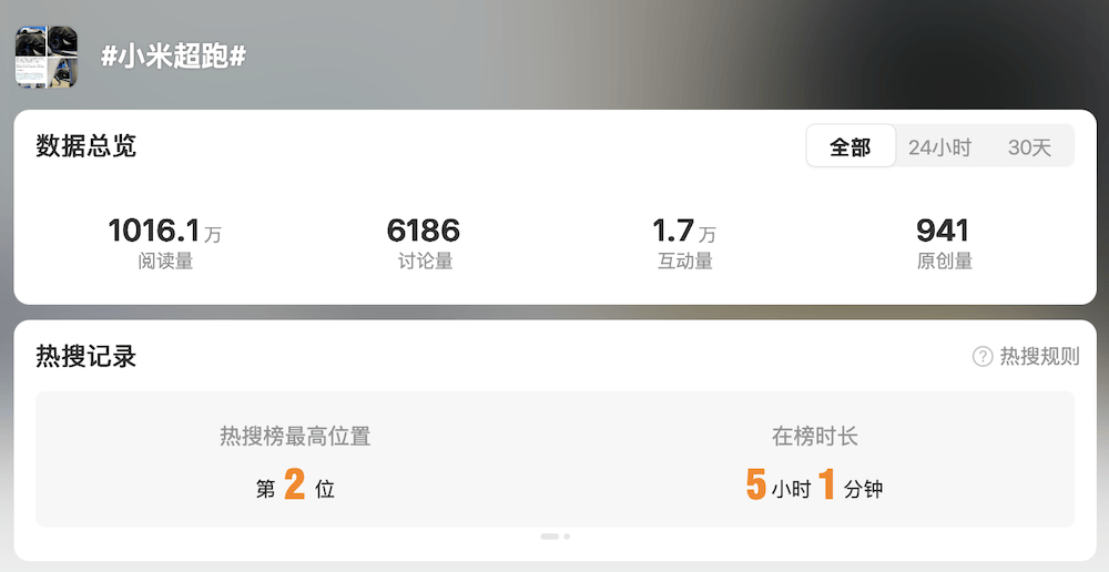 而关于“小米超跑”的话题,一度登上热搜前二。